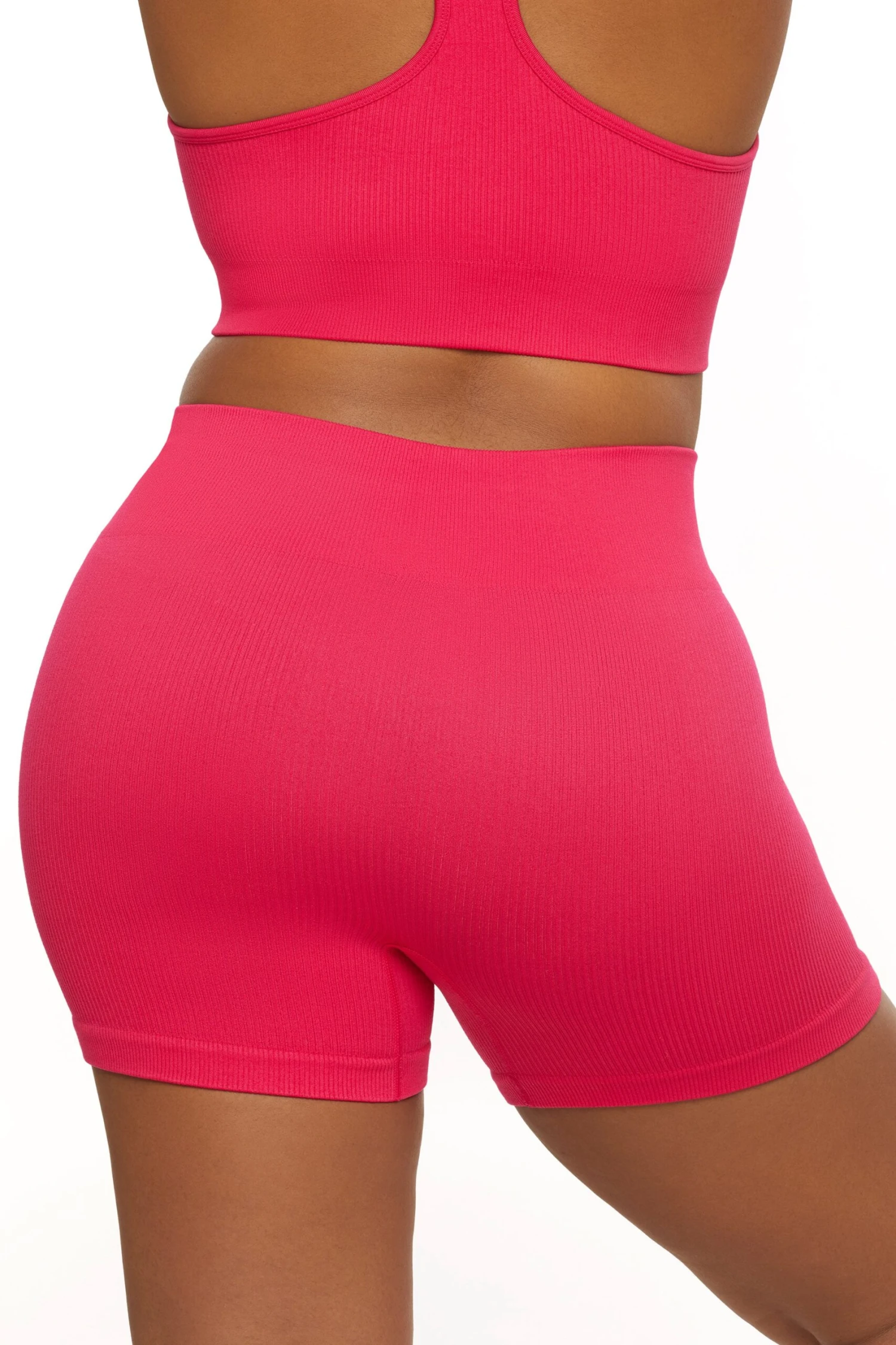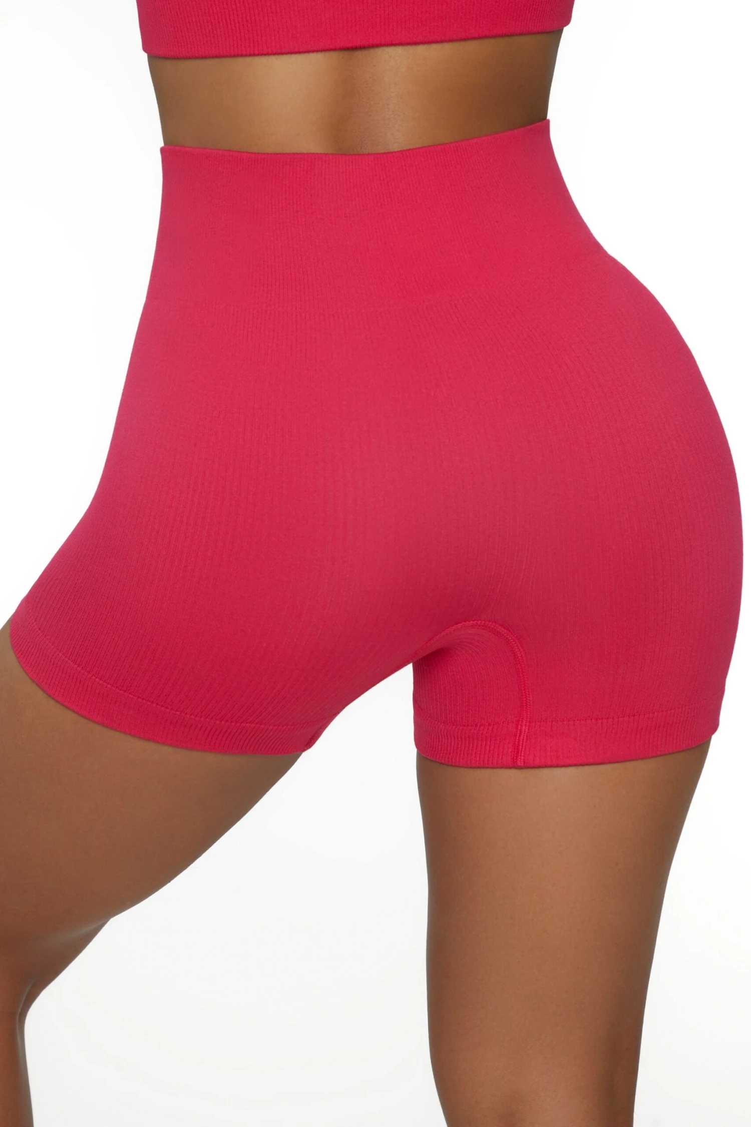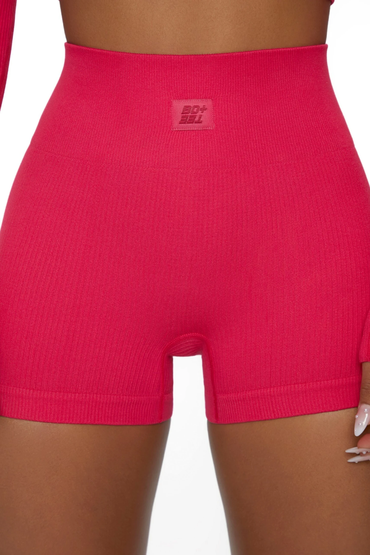Train freely in the Run For It mini shorts, a seamless design made from super soft, stretchy ribbed fabric with a high waisted, compressive waistband thatll stay put through your gym session. Featuring a super sculpting fit that cinches the waist, the thick ribbed knit fabric is also squat-proof and wicks away moisture on the go, letting you focus on the workout at hand. Partner with the matching short sleeve sports crop and get ready for leg day.