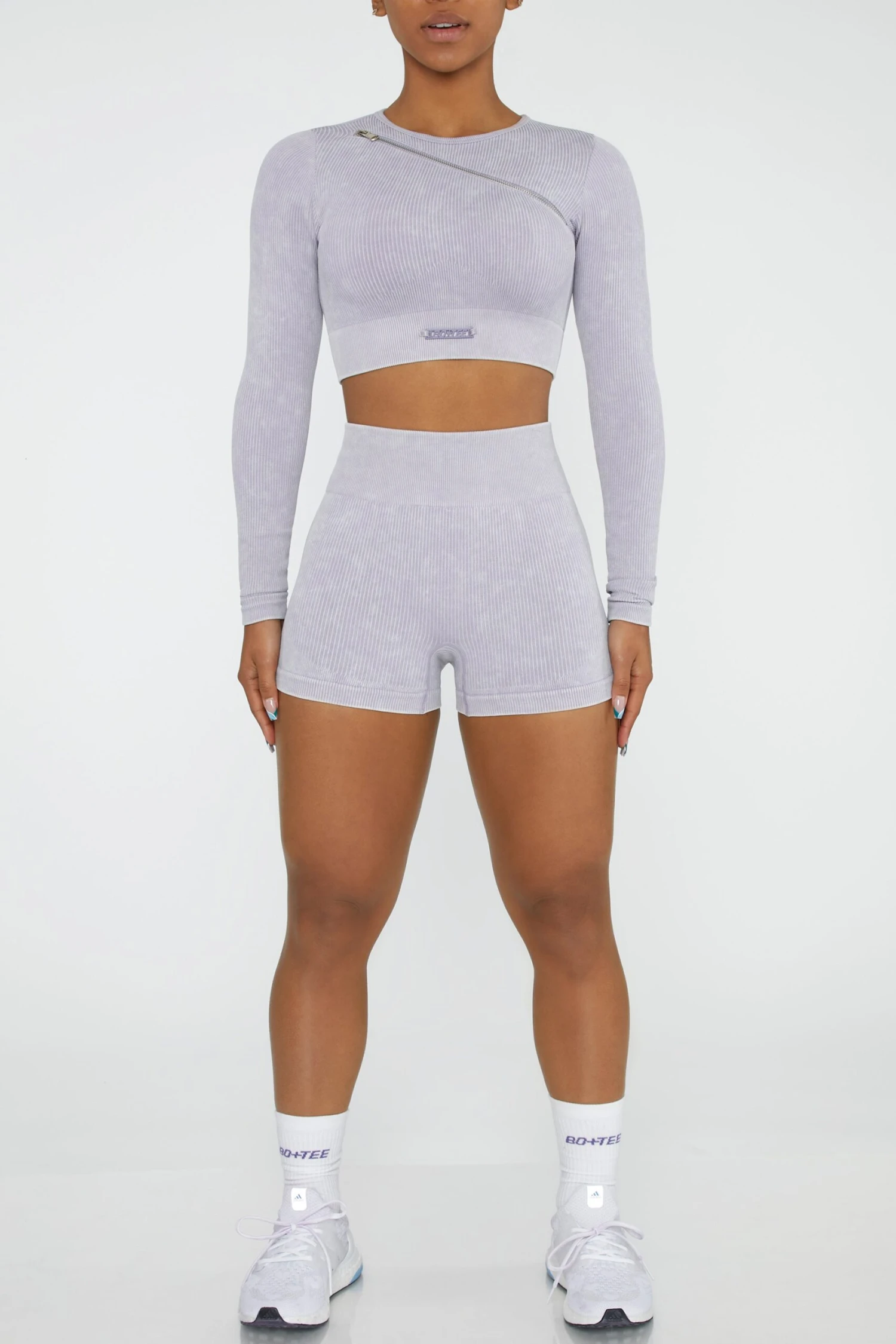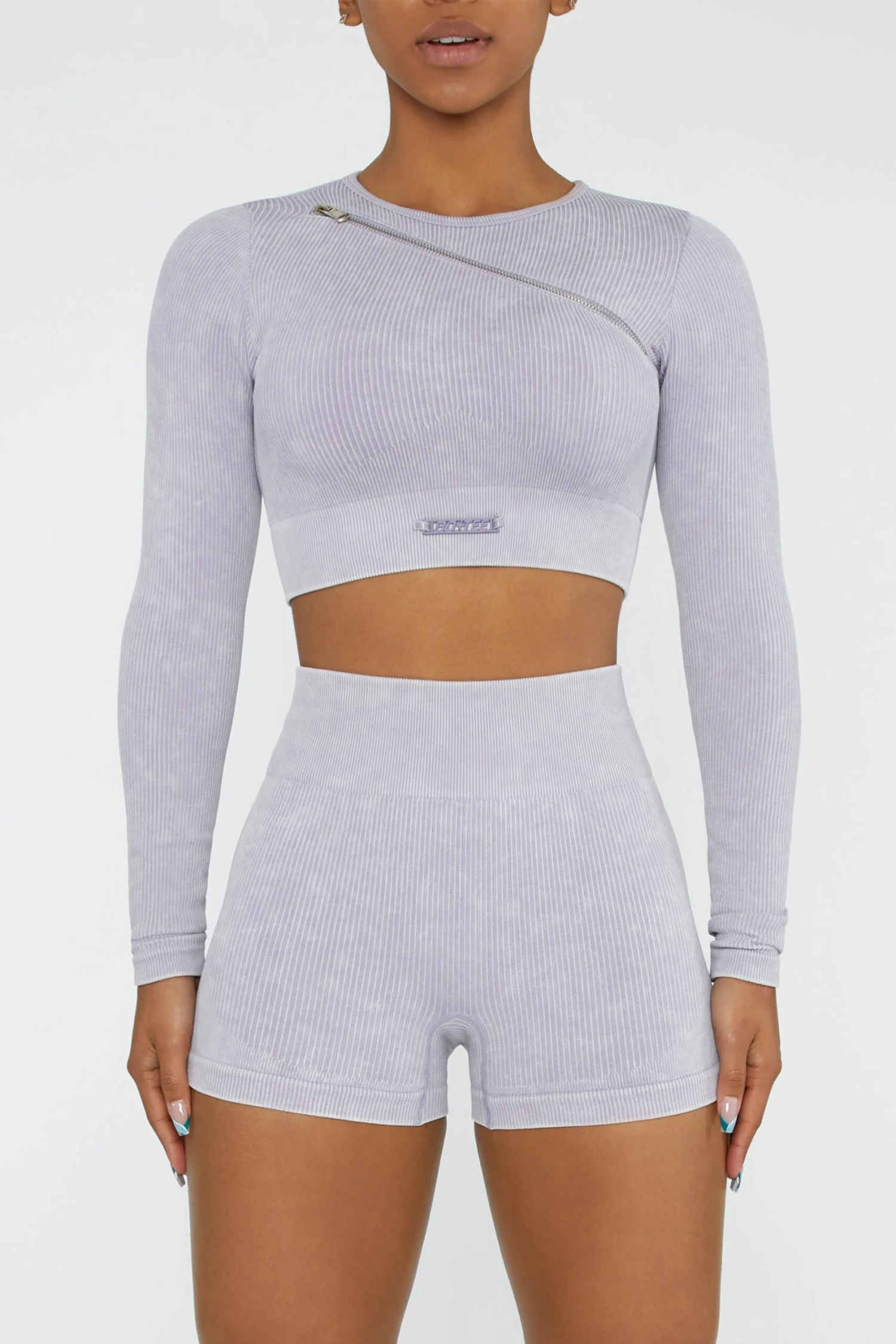 Motivation starts with a new kit, and you can trust Agile to get you in the mood. Youll love the fit, made in seamless, sweat-wicking fabric with an acid wash design. Long sleeves, a cropped length and diagonal zip detail finish the look. Pairs well with the matching leggings or shorts.