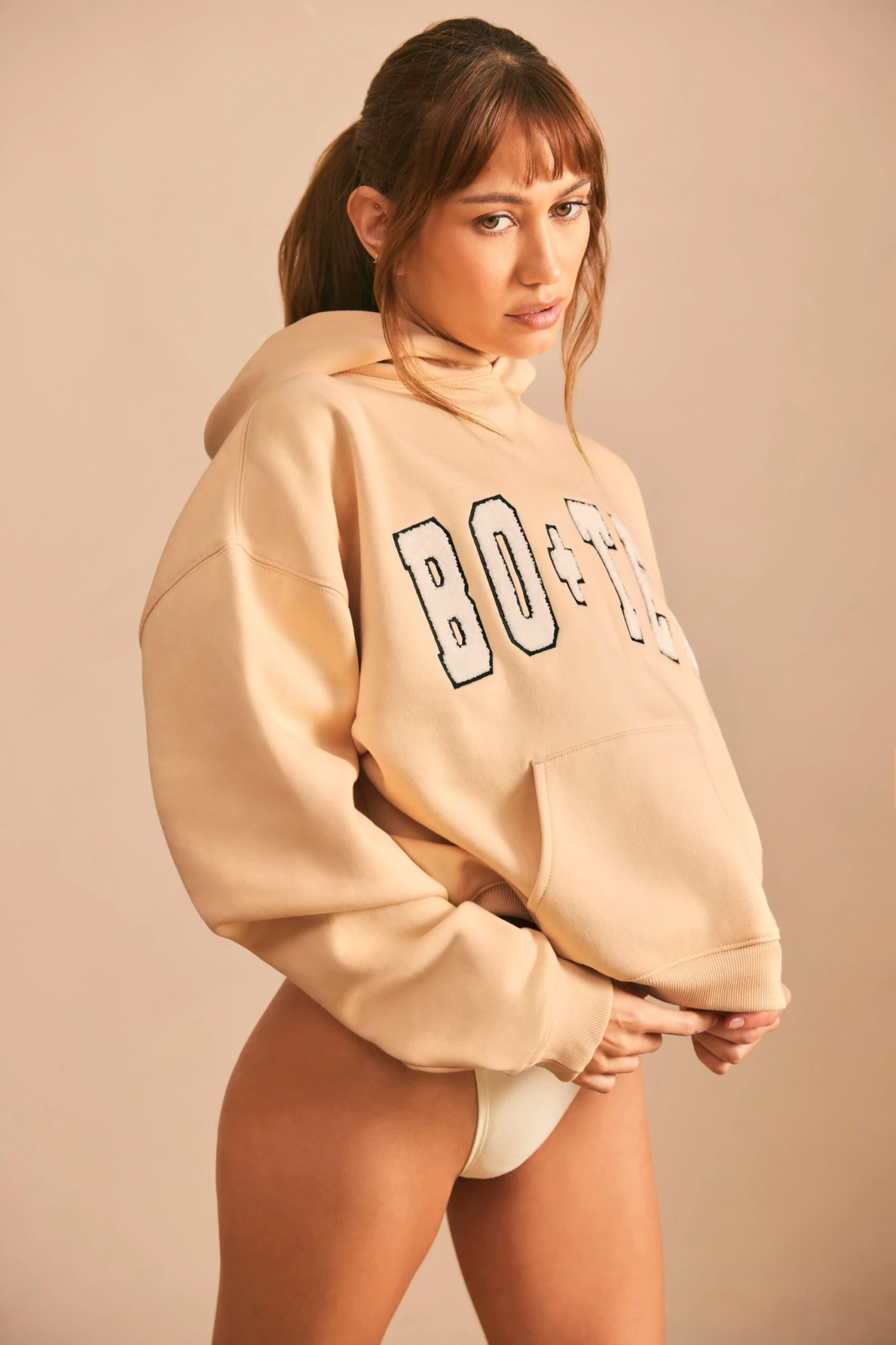 Say hello to next level comfort with our new oversized hoodie. Cut from our 330gsm heavyweight custom knit fabric, the Off-Duty oversized hoodie is fleeced on the inside for a super soft and cozy feel. Designed for ultimate comfort, the Off-Duty hoodie has a relaxed fit with dropped shoulders, oversized sleeves and kangaroo pockets and is complete with a signature Bo+Tee applique patch varsity logo.