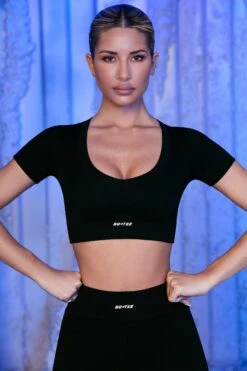 Boost your next workout in our seamless V neck sports bra. With supportive ribbed contouring and padded cups, its finished with a flattering racer back to frame your shape. Designed in trending indigo acid wash, this sports bra was made for effortless style.