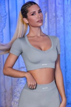 Perform Ribbed Short Sleeve Zip Front Crop Top In White