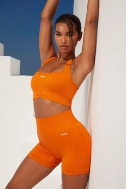 Radiate Ruched Sports Bra In Deep Orange