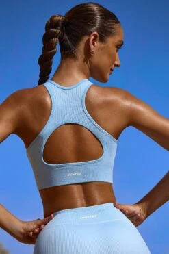 Spring rib sky blue plunge sports bra bundle