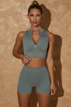 - Body contouring ribbed fabric (92% Nylon, 8% Elastane)