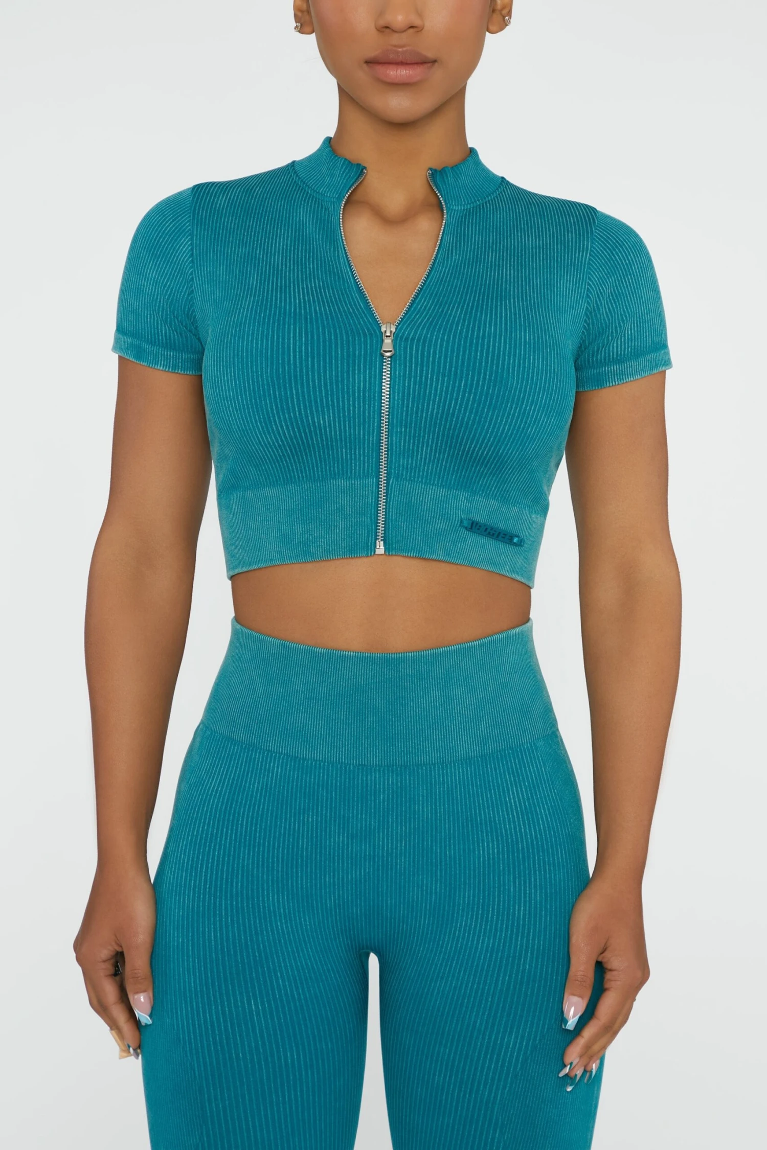 Hit the ground running in Chase, our new short sleeve crop top with supportive ribbed hems and a functional zip up front. Partner yours with the matching high waisted shorts and boss your next workout.