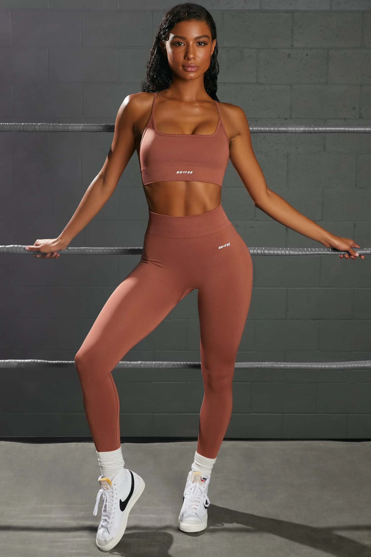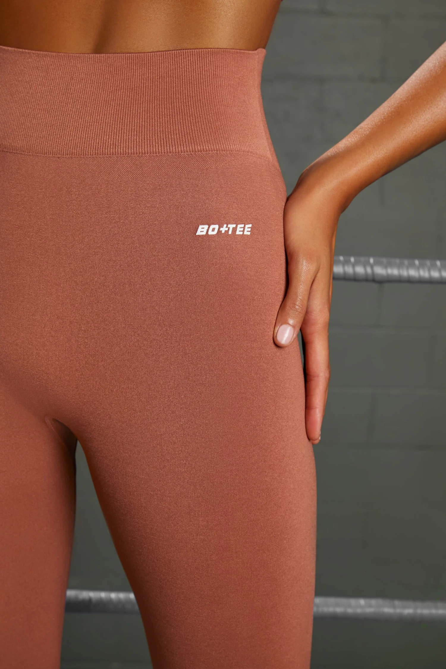 Power forward in Surge full length leggings. Designed in our all-new lightweight seamless knit fabric that moves with you, our rust gym leggings are complete with a curved secure ribbed waistband for non-slip support and accentuating ribbed shaping to the rear. Paired with the matching crop top or sports bra, these smooth workout leggings were made for supercharged sessions.
