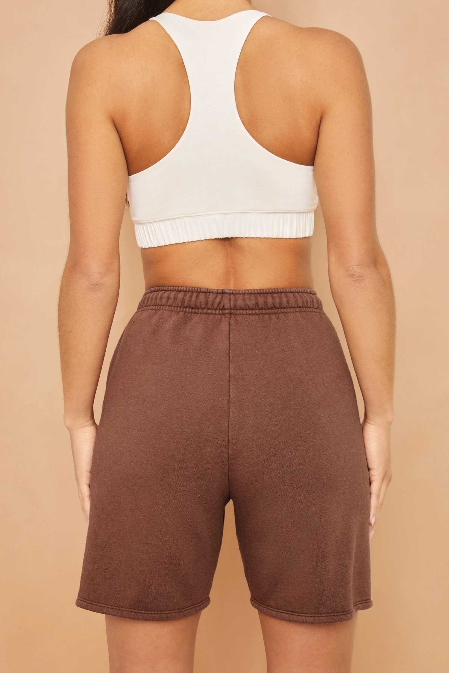Lounging made easy, Track Star jogger shorts were made for rest and recovery. In soft, cotton sweat fabric for a super comfy feel, these loose fitting shorts are cut to a high waist with adjustable elasticated waistband and large side pockets. Finished with our new embroidered logo at the side, weยre pairing with a cropped bralet and oversized sweat for a totally chill look.